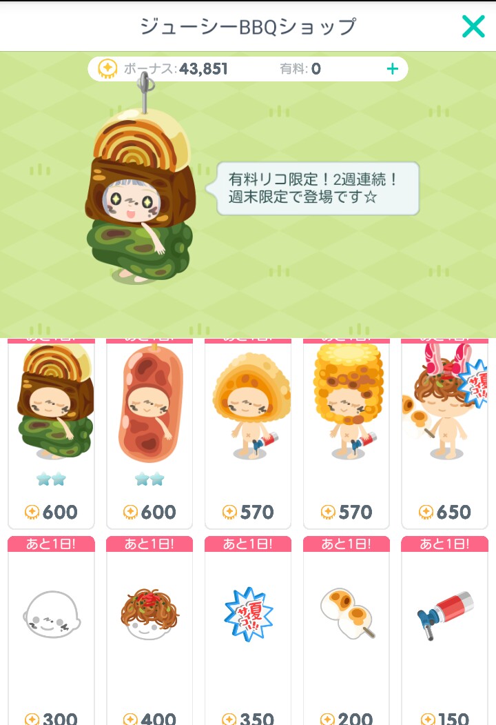 着ぐるみだけでなく小物に拘っているのは良いんだけどさ、正直着ぐるみ内容が完成された食材だけしかなくって、BBQを語るんだったら炭や網その他BBQに必要な着ぐるみもあれば多人数での盛り上がりも可能だと思えたんだけどね(;^_^A