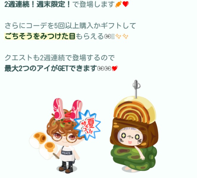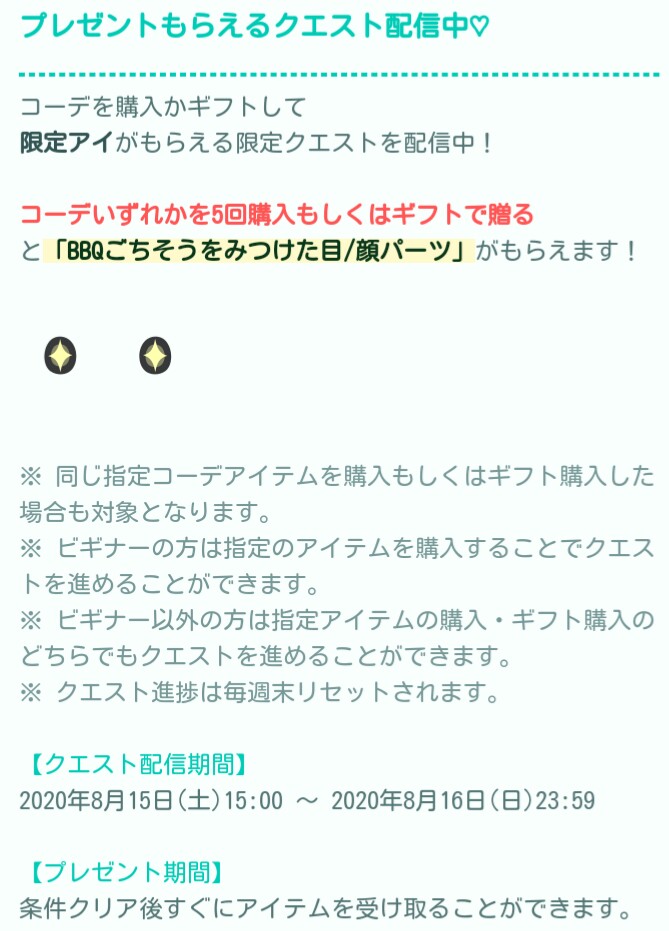 ぶっちゃけよく考えると、2週合わせて合計で10点以上のコーデを購入しないと2個目の顔パーツの目が貰えないって事は安くても5,700円、高くて6,500円近くの課金をしないといけないのでもうピグパに依存している重課金以上のユーザーくらいしか貰えないだろwww