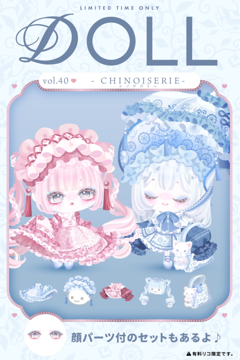DOLL vol.40 シノワズリー 単品を個数限定にしてセットアップを買わせる作戦か?w 公開日:2026年1月11日 ショップ関連 こちらではロリータ系でクオリティの高いピグパブランドのDOLLより 「vol.40 CHINOISERIE」が登場したので記録していきますね(`◉◞౪◟◉) 続きを読む