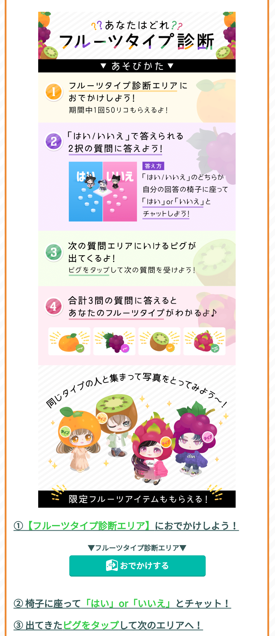 ・フルーツタイプ診断エリアにおでかけする