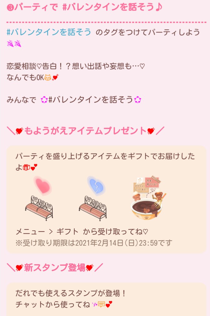 そしてイベントがバレンタインなので異性に縁がないユーザーでも救われるような内容のもようがえアイテムやガチャアバターなどが登場しているのでまだ無課金ユーザーであっても楽しめる仕様なのは(・∀・)イイ!!ねwww