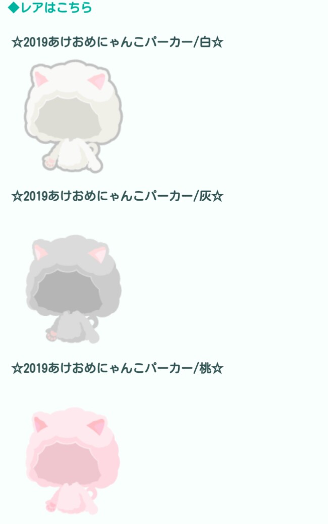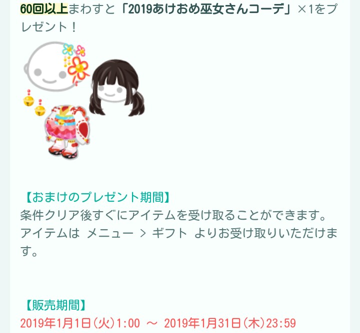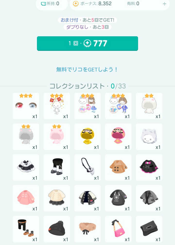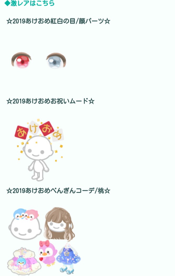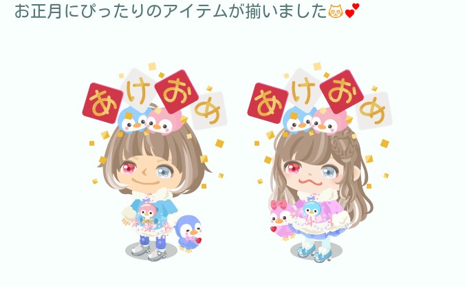 固定された物は年明けのご利益物くらいであとはそれぞれ男女別々のアバターになっているのである意味福袋感はあるかもしれませんね(^^♪