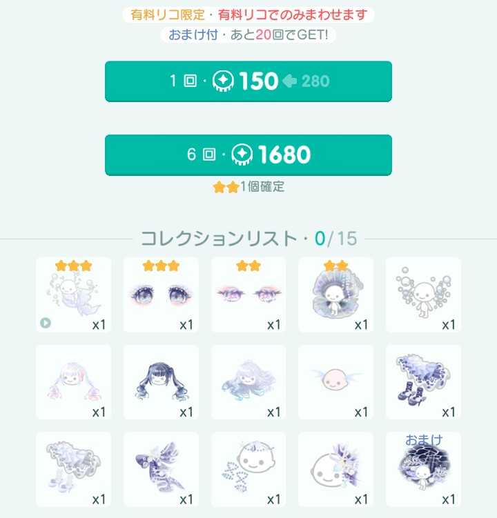 6連で1,680リコなので約3回分+α回数なので恒例の約5,000円課金にてこの泡沫ムードが貰える鬼畜搾取仕様となっていますw