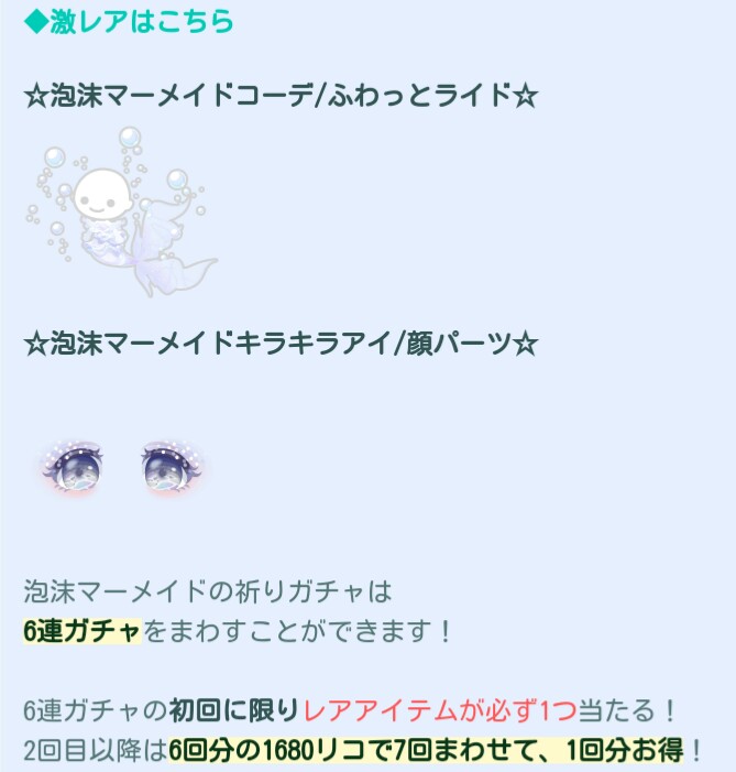 はいwでは今回も冒頭に関連する内容で有料ガチャとして「泡沫マーメイドの祈り」が登場したので記録していきますね(^_-)-☆