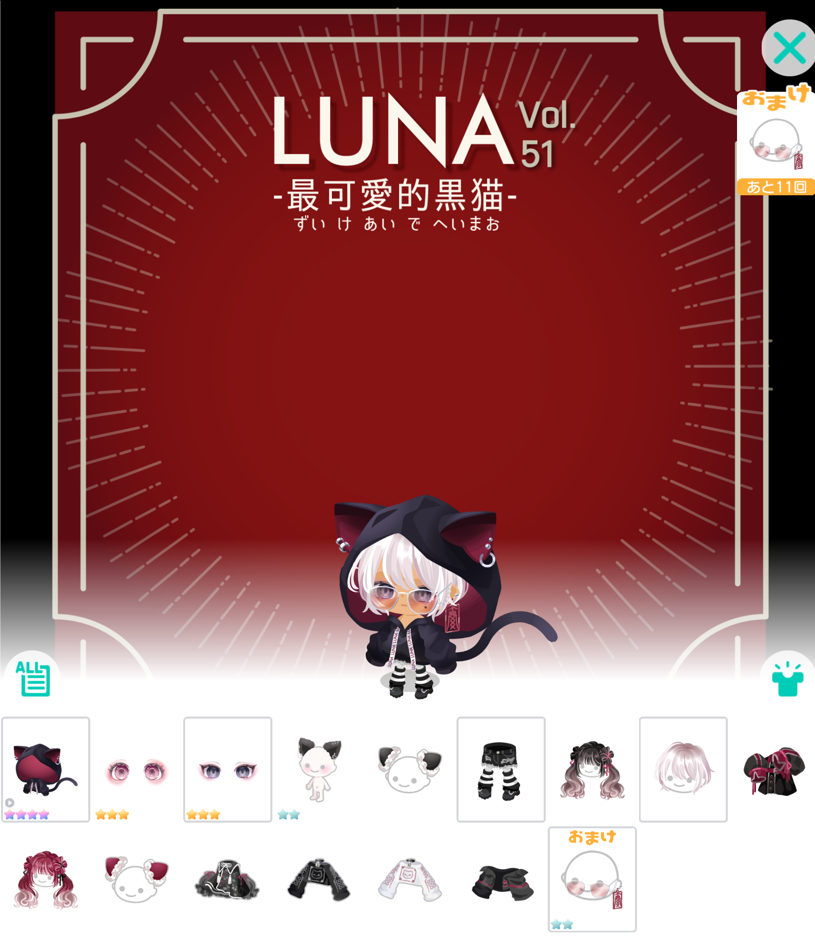 こちらではアニメ付猫耳パーカーが超激レアの目玉内容のピグパブランドよりまたしてもニャンコネタで中華の有料ガチャより「LUNA vol.51 最可愛的黒猫(ずいけあいでへいまお)」が登場したので記録していきますね(^_-)-☆