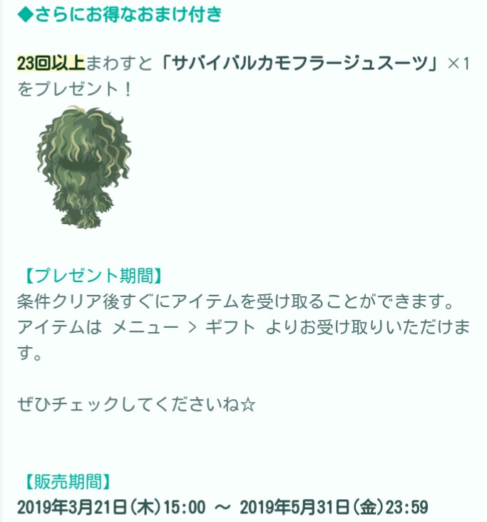 規定回数でのおまけと販売期間