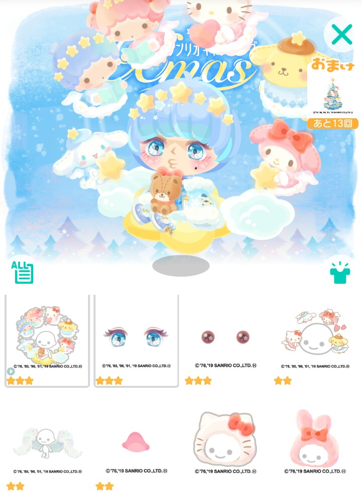 はいwでは今回は上記の画像を見れば大半の方は解る通り、女の子なら大体どれかが好きであろう超大手ブランドサンリオから有料ガチャとして「サンリオキャラクターズXmas」が登場したので記録していきますね(^_-)-☆