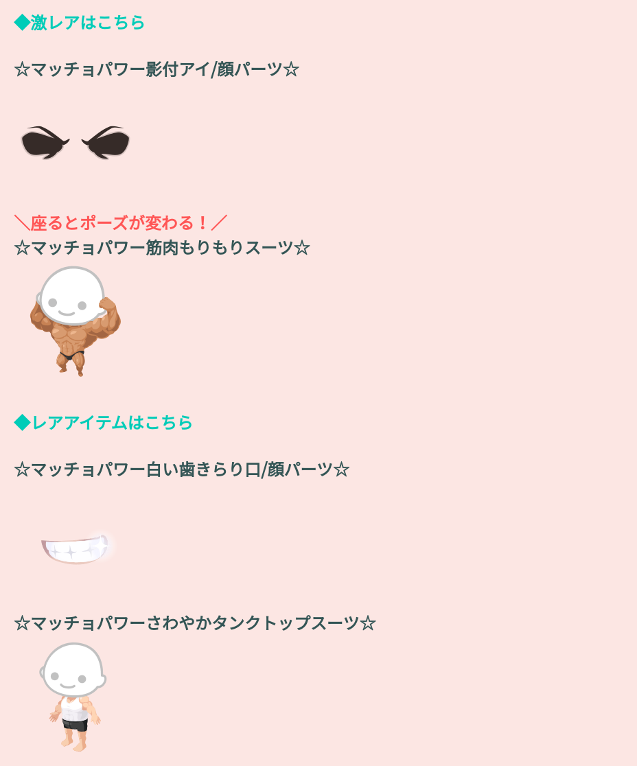 こちらではひっさびさ有料内容で斬新かつ新鮮で盛り上がれそうな有料ガチャ&無料ショップより「マッチョパワー!!」が登場したので記録していきますね(^_-)-☆