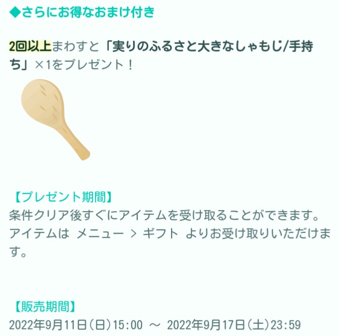 おまけ内容では唯一褒める点として2回でも貰えるてもちのしゃもじなんだけど~これってさw普段から鬼畜搾取回数になっているからこれはこれで(・∀・)イイ!!仕様に思えるけどぶっちゃけ刷り込みですよね?(´ε`;)ウーン…www