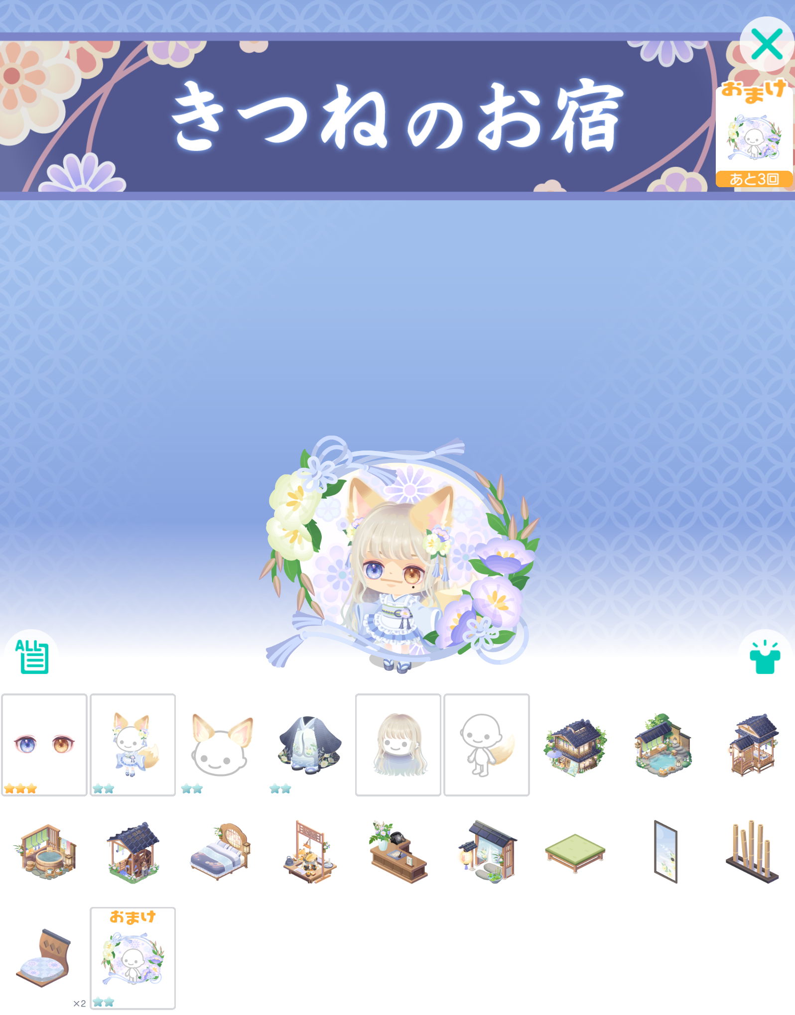 こちらではハピネスマンスリーを(σ・∀・)σゲッツ!!させるために作られたような内容の低価格帯有料ガチャより「きつねのお宿」が登場したので記録していきますね(^_-)-☆