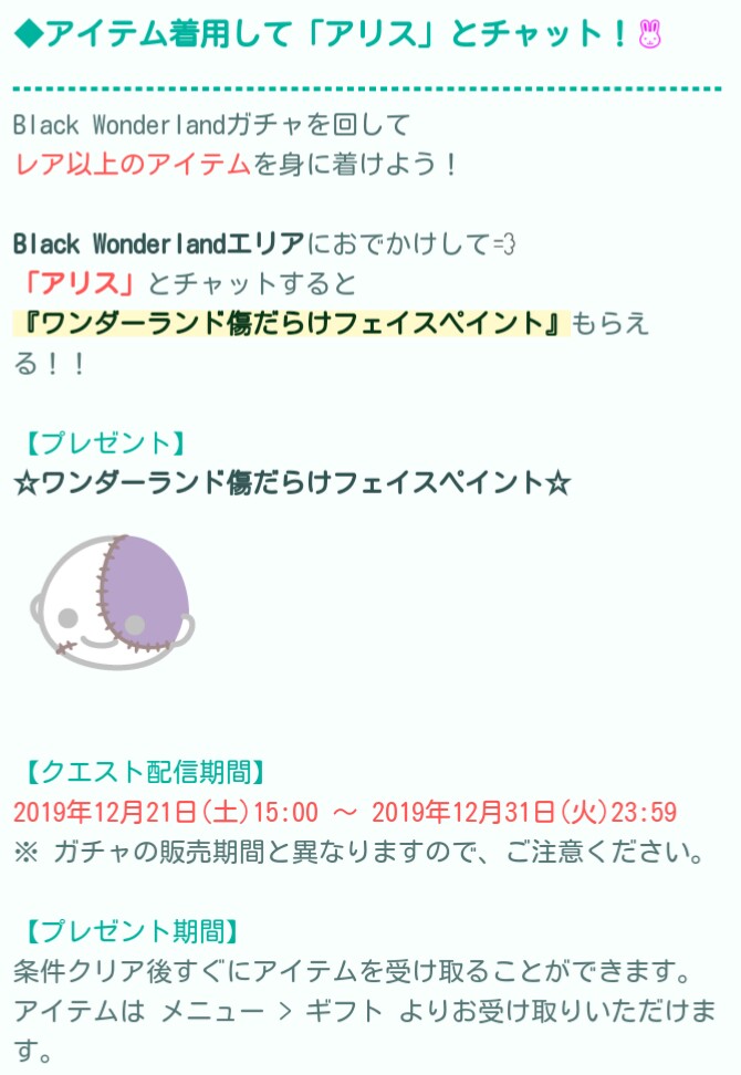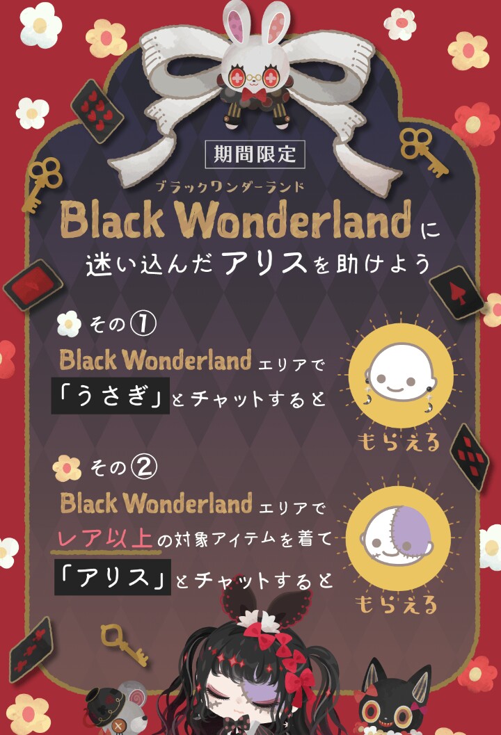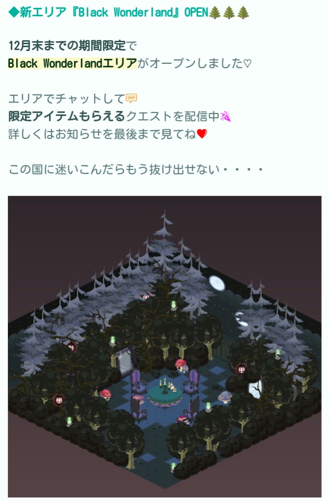 はいwこちらではブラックワンダーランドガチャとの連動のイベントクエストが期間限定で専用エリアもついた内容で登場しています(=゚ω゚)ノ