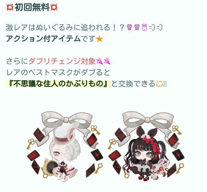 2個このマスクが被って成就するなら良い物だけど、6連(約1,500円課金)でこのマスクが2個被るほど良い物が出ない方も悲しいね…(´;ω;`)ウゥゥ
