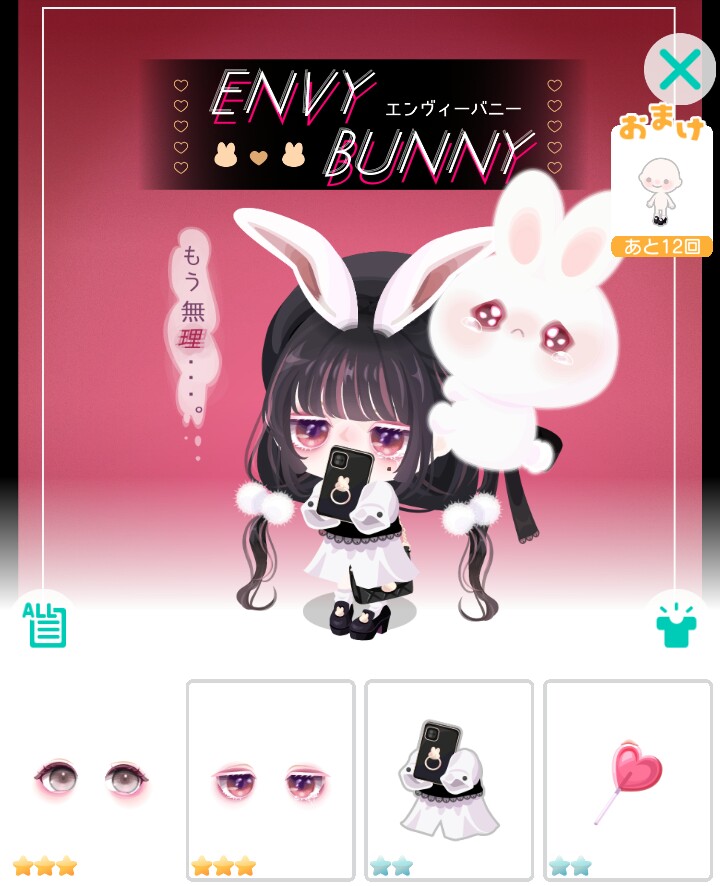 こちらでは人気動物ののうさぎネタで定番だけど無料のクオリティがカス以前使ったネタでも優良に見える有料ガチャより「ENVY BUNNY」が登場したので記録していきますね(^_-)-☆
