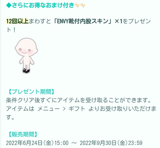 おまけ設定では最近ちょこちょこ出てきている内股のスキンチェンジアバターと女の子としての個性が出てくるアバターが設定されていて12回とこれはちょっとイミフな搾取回数となっているので連ガチャ+でガッツリ回せる課金者ユーザーのみ美味しいオシャレが出来るという意味では殿様営業すぎるんではないか?って思いましたね( ゚д゚)マチガイナイ