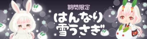 はいwでは今回は1月と言えば冬、冬と言えば雪、雪と言えば雪うさぎ!と連想でもさせられるかのような有料ショップから「はんなり雪うさぎ」が登場したので記録していきますね(^_-)-☆