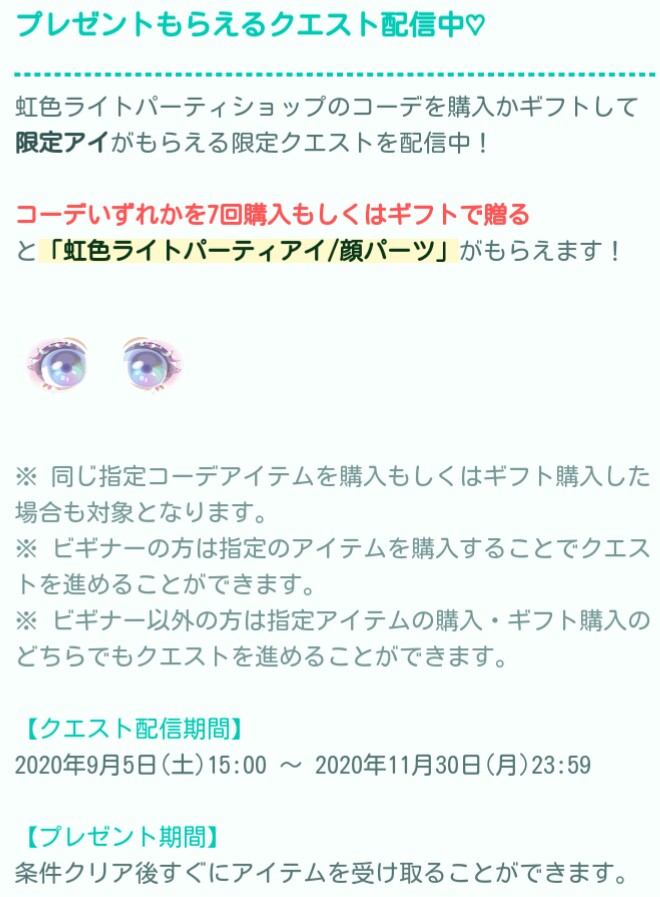 こちらではギフトクエストで目が貰えるという触れ込みで大量課金を促す有料ショップより「虹色ライトパーティ」が登場したので記録していきますね(^_-)-☆