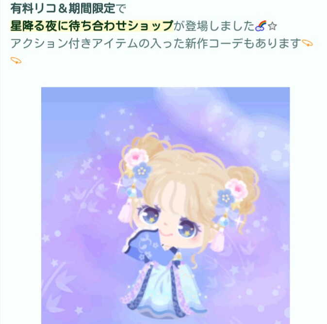 はいwでは今回は冒頭で結果が解ってしまった有料ショップより「星降る夜に待ち合わせ」が登場したので記録していきますね(^_-)-☆