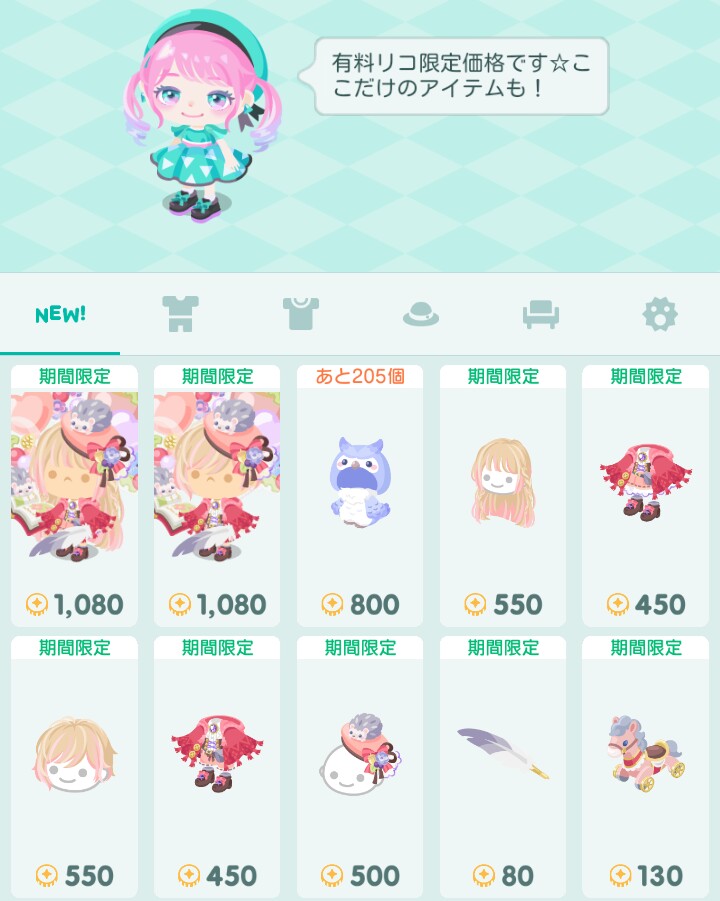 更にこの有料コーデですら1,000リコ以上掛かるというえげつなさは変わらないので、このコーデを身に着けているレアいユーザーを見つける事を頑張ってみましょう(=゚ω゚)ノ