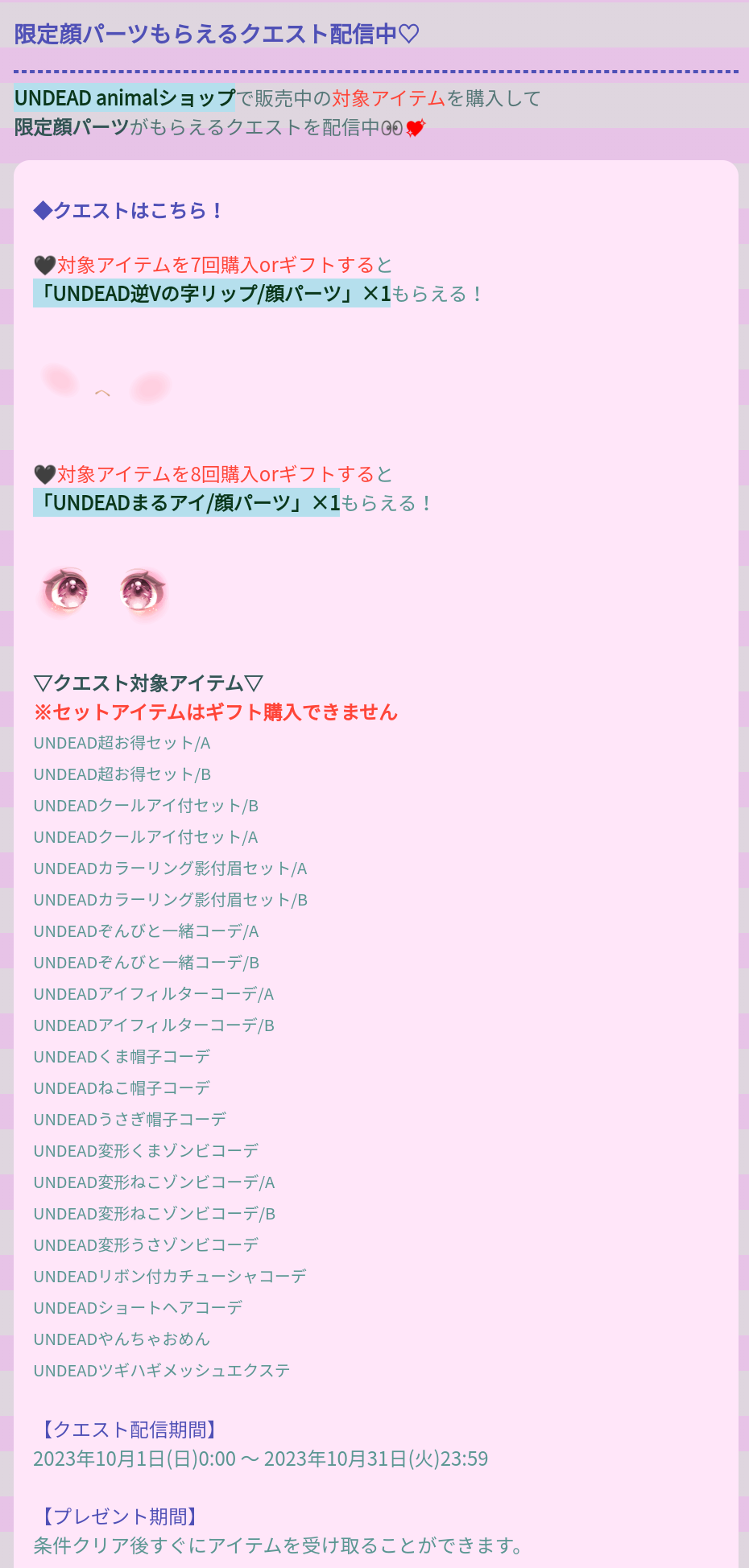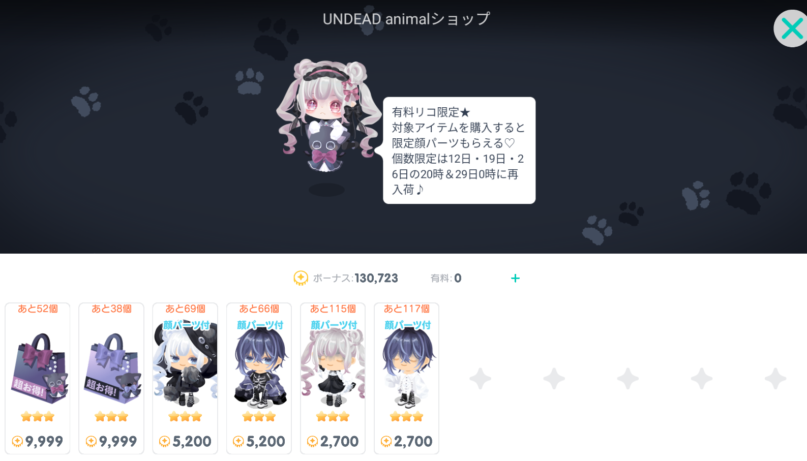 こちらでは顔パーツの目もついているセットアップ内容が売られだした高額価格ばかりの有料ショップより「UNDEAD animal」が登場したので記録していきますね(^_-)-☆