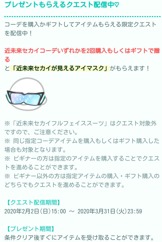 セットアップコーデとギフトクエスト