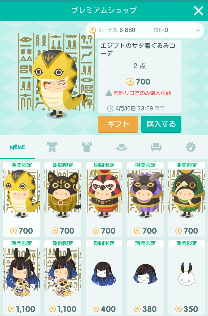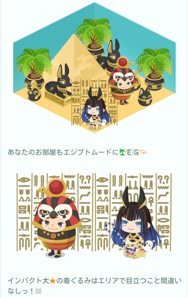 はいwというわけで独断と偏見の愚痴はここら辺で止めといて今回登場した有料リコ専用のショップアイテム「エジプト神サマーズ」という某芸人のグループ名とダジャレをパクったような名前の内容が登場したので記録していきますね(^_-)-☆