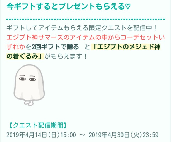着ぐるみとムードで700リコとなっていて、多種類アイテムが付属しているコーデに至っては相変わらずの1,000リコオーバーとなっているので、なるべく安いコーデをギフトしないと自分の負担が多くなるので、おまけ狙いのユーザーはそこら辺を計画的に考えてからギフトクエストを達成させましょう(-_-)/~~~ピシー!ピシー!