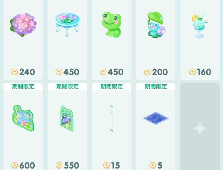 唯一◎だなぁって思えた…は内装アイテムが有料無料どちらも一緒のラインナップという事なので6月の梅雨時期を再現するなら無料内容でも可能という事が良かったですねw