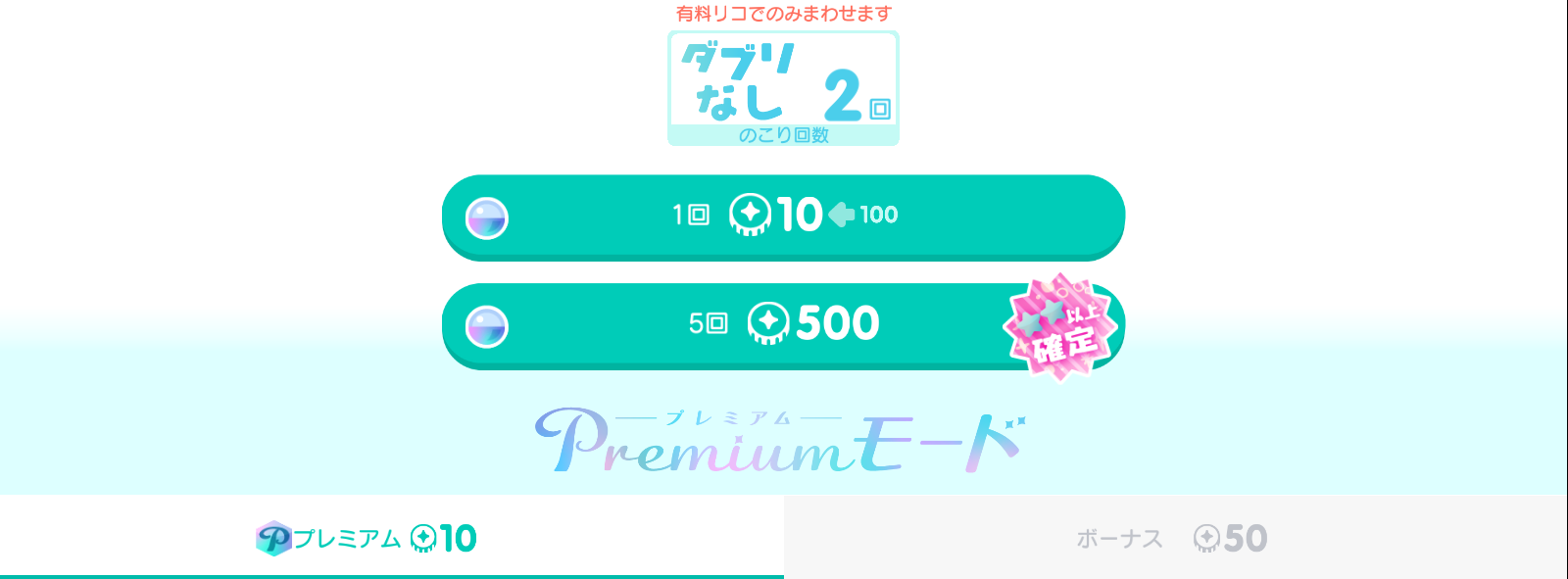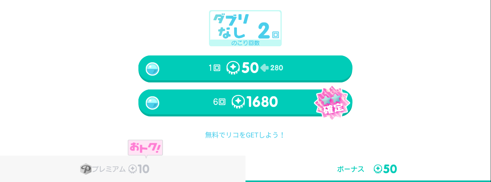 プレミアムモードの比較内容では有料も無料も初回のシングル価格が安くお試し安いくらいであとは通常リコとなると無料リコでは1回280リコと割に合わない割高となっているのでぶっちゃけ回すメリットが薄いと思いました。