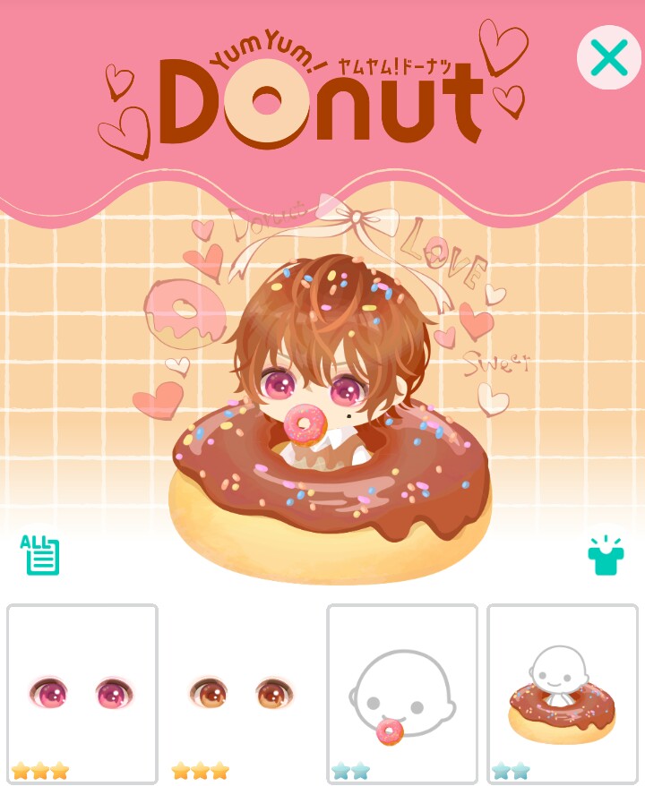 こちらでは月水に新作が登場するという中でクオリティが上がっているわけではない有料無料選択ガチャより「YumYum Donut」が登場したので記録していきますね(^_-)-☆