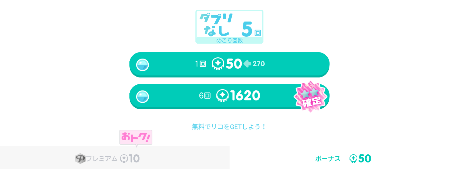 有料も無料もどちらの初回に掛かるシングル費用は安くてお試ししやすいものの~正直有料で100リコをこのガチャに使おうと思うのであれば他のクオリティが高いガチャのシングルなどに回す方が有用だと思うし、無料内容に至っては普通に270リコとかボッ〇くり同然価格で一体全体何不満以外の何が零れるというんだ?って疑問しか残らないか価格設定にビックリと唖然しか思いつきません(´・ω・`)