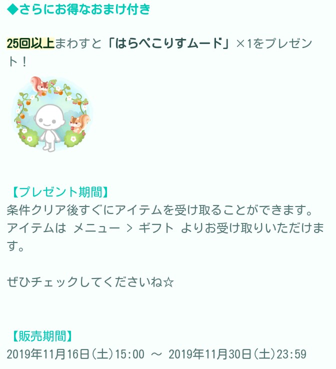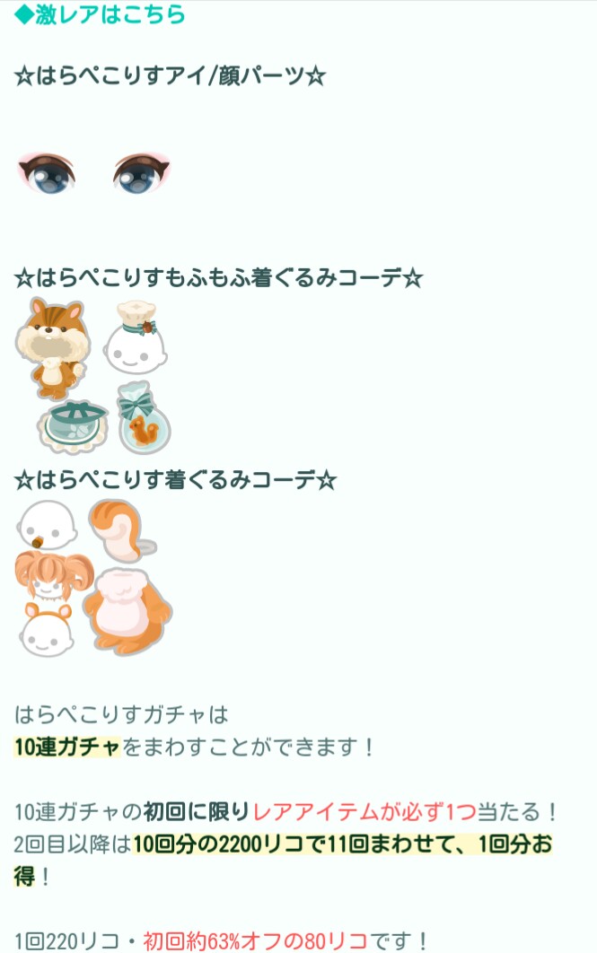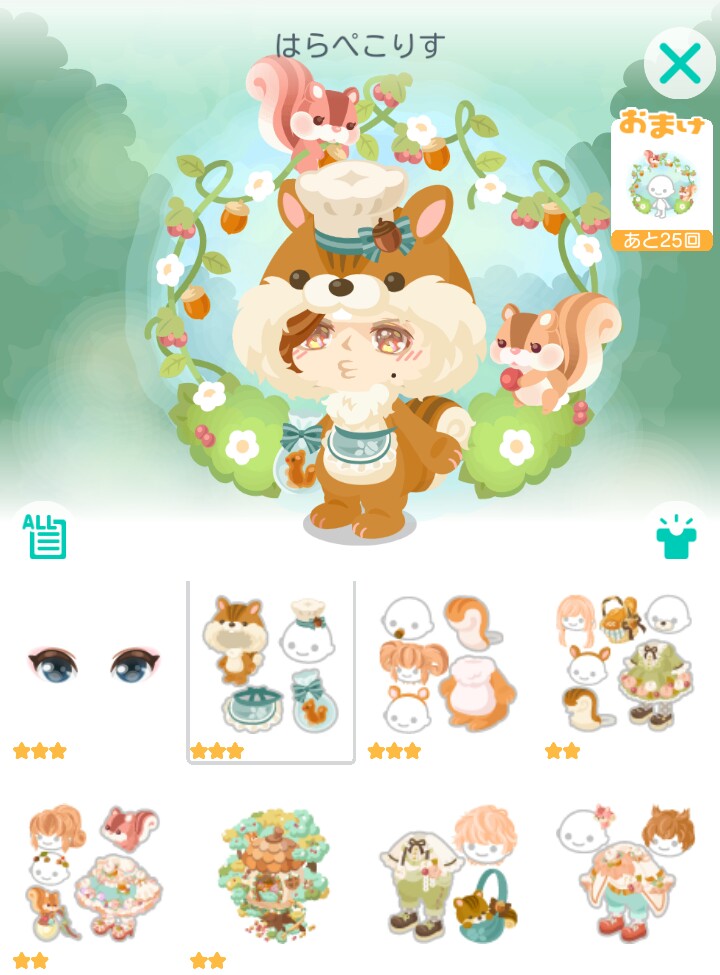 はい…wでは今回は…同日に登場したピグクリ有料ガチャと比べてテンションが駄々下がりする無料ガチャから「はらぺこりす」が登場したので記録していきますね( ´Д`)=3 フゥ