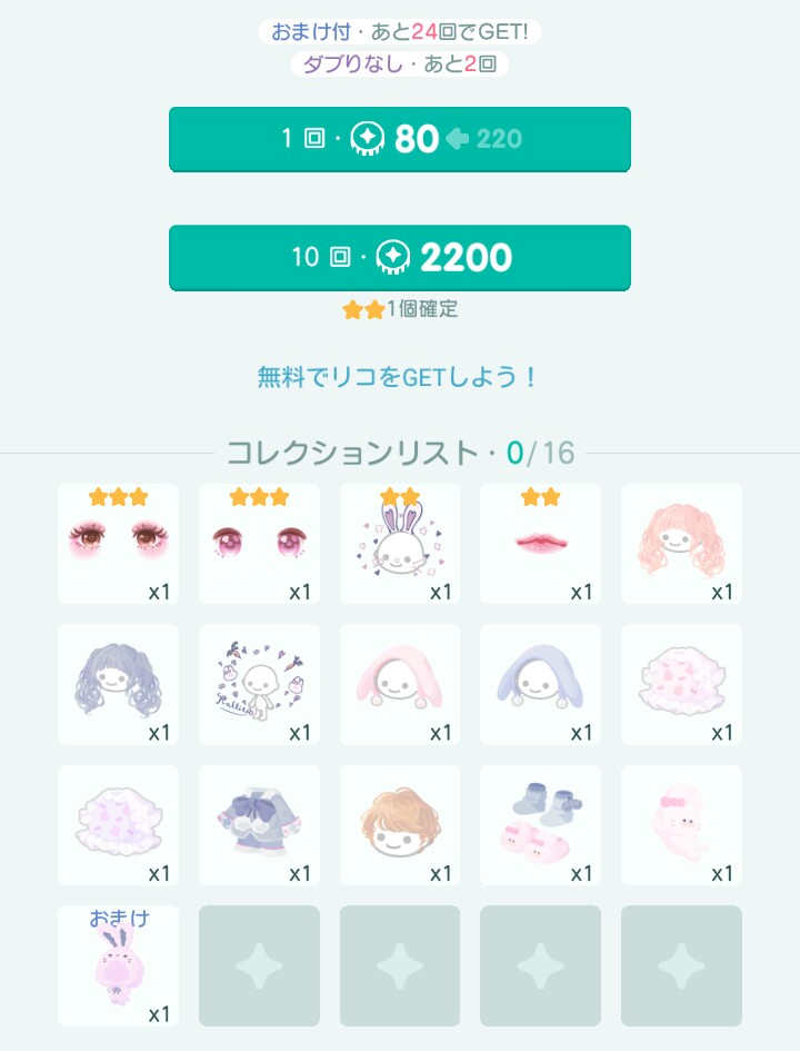 10連で2,200リコとちょい割高なのでCPチケット狙っている方は自分のお財布と相談しつつ10連を引くようにしましょう(;´∀`)