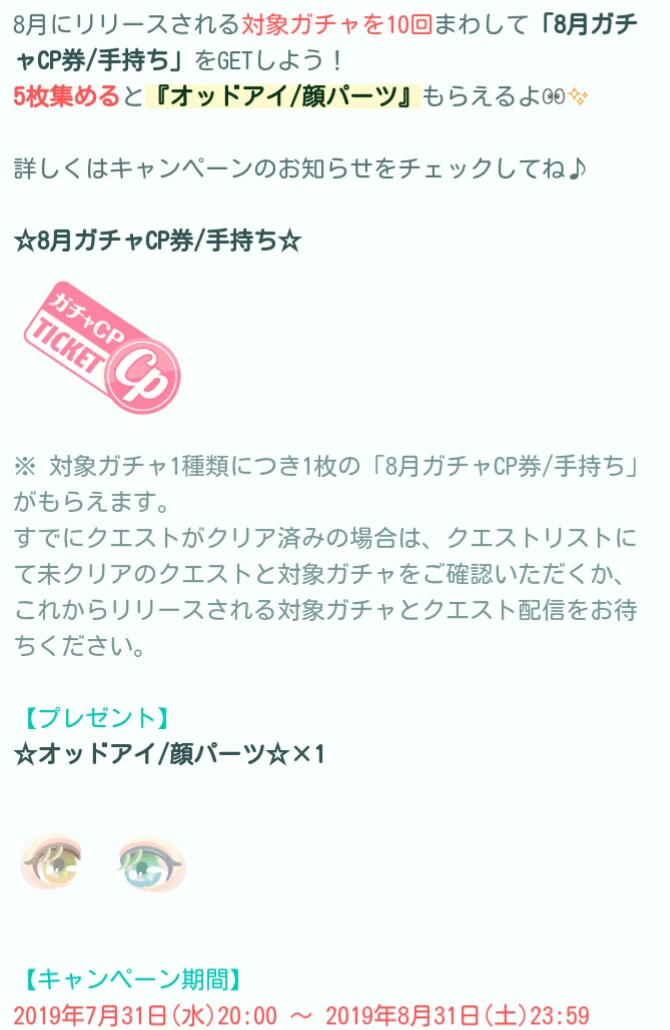 やっぱり今月のCPチケット対象ガチャってテケトーに企画されてるわ┐(´∀`)┌ヤレヤレ