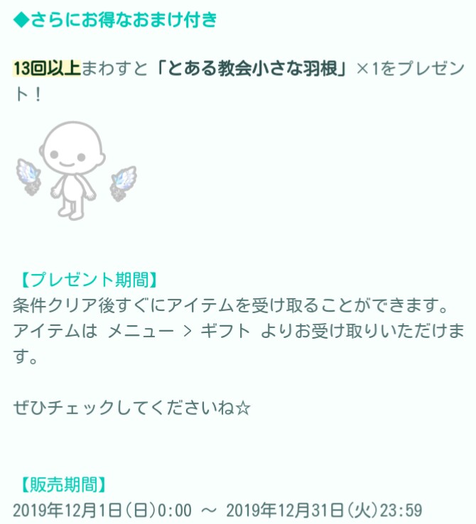 はいwでは今回は12月のエリア基準となる無料ガチャから「とある教会での約束」が登場したので記録していきますね(^_-)-☆