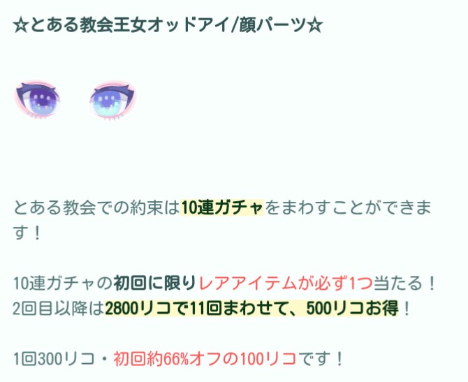 レアでデカ目が出るなら欲しいけど、2,800リコは高いよねぇ…┐(´д`)┌コワイワァ