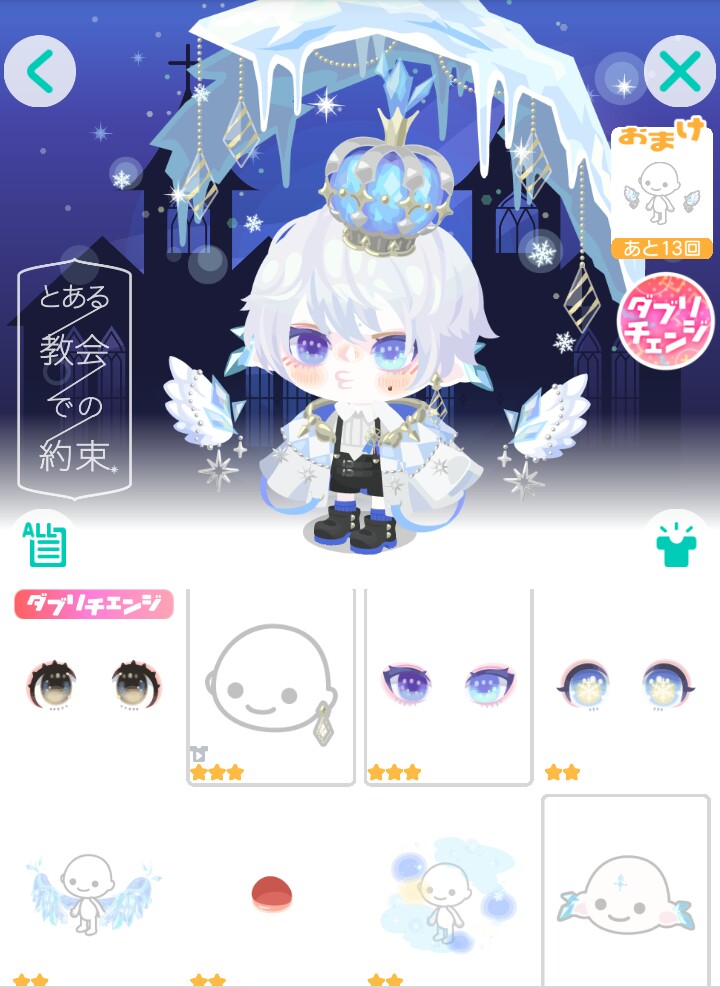 そしてこのダブリチェンジは25%の中で唯一のデカ目がダブルことで貰える真のデカ目〜みたいな顔パーツが貰える仕様なのですが、それだったら別のハズレ枠のレアにダブリチェンジして欲しかったよね(;^ω^)
