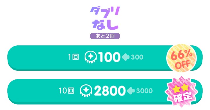 こちらも結局初回の2,800リコ+1回300リコというトータルで3,000リコを使わないと貰えない、もはやおまけレベルではないおまけ内容となっていますが、それでも貴方は回しますか?