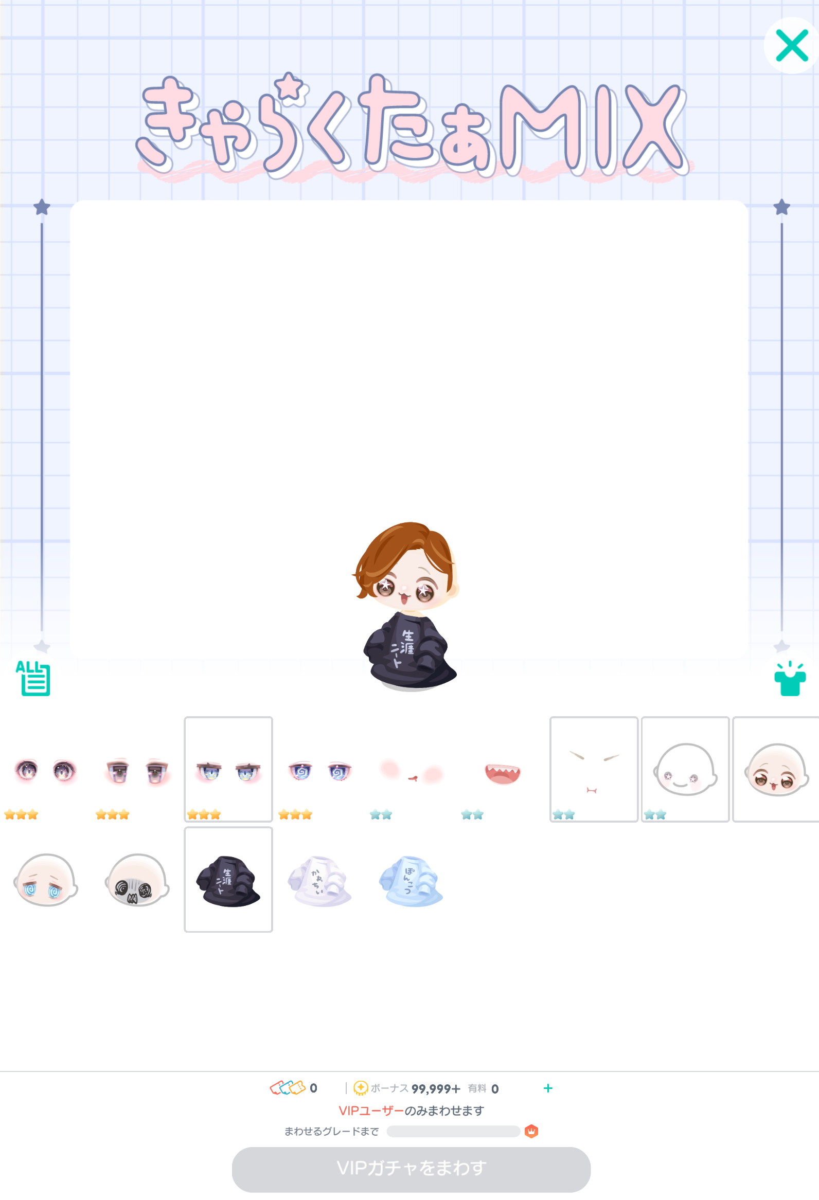 こちらでは月間VIPグレードになれたユーザーだけが回す事の出来る有料ガチャより「きゃらくたぁMIX」が登場したので記録していきますね(^_-)-☆