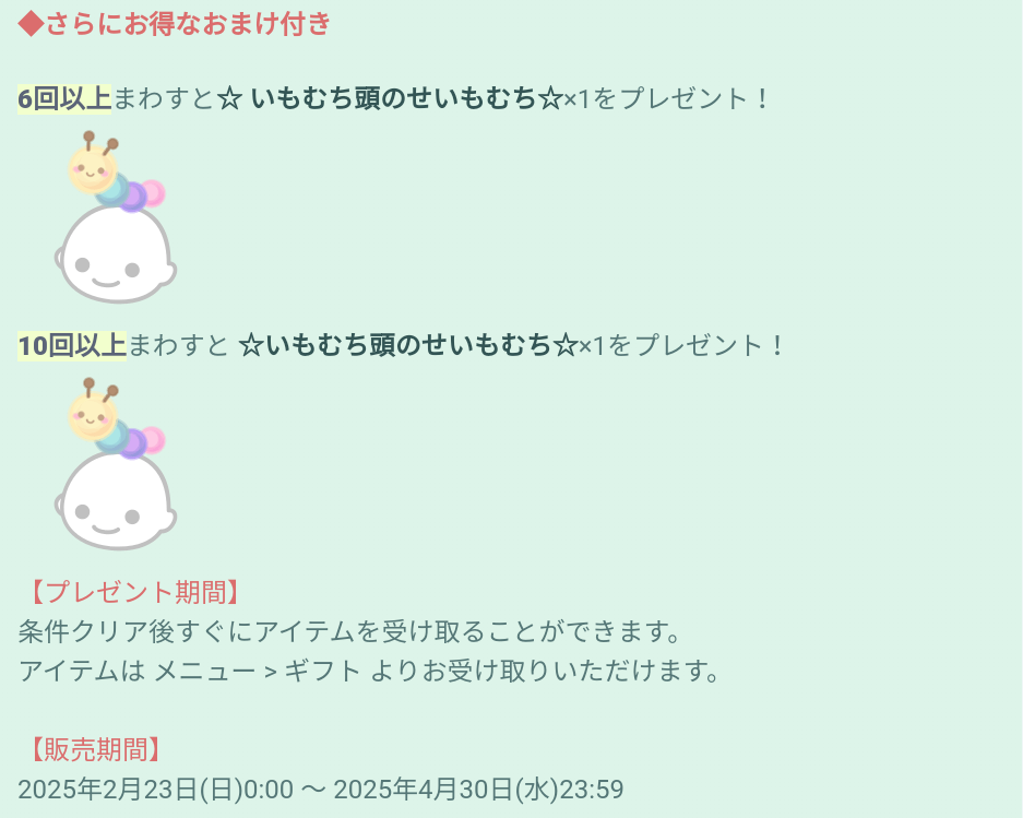 規定回数でのおまけと販売期間