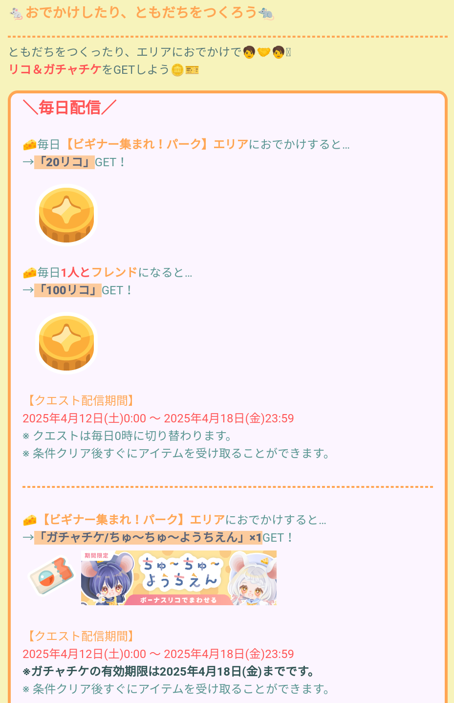 こちらではビギナー集まれ!パークにてクエストとがちゃが連動している内容より