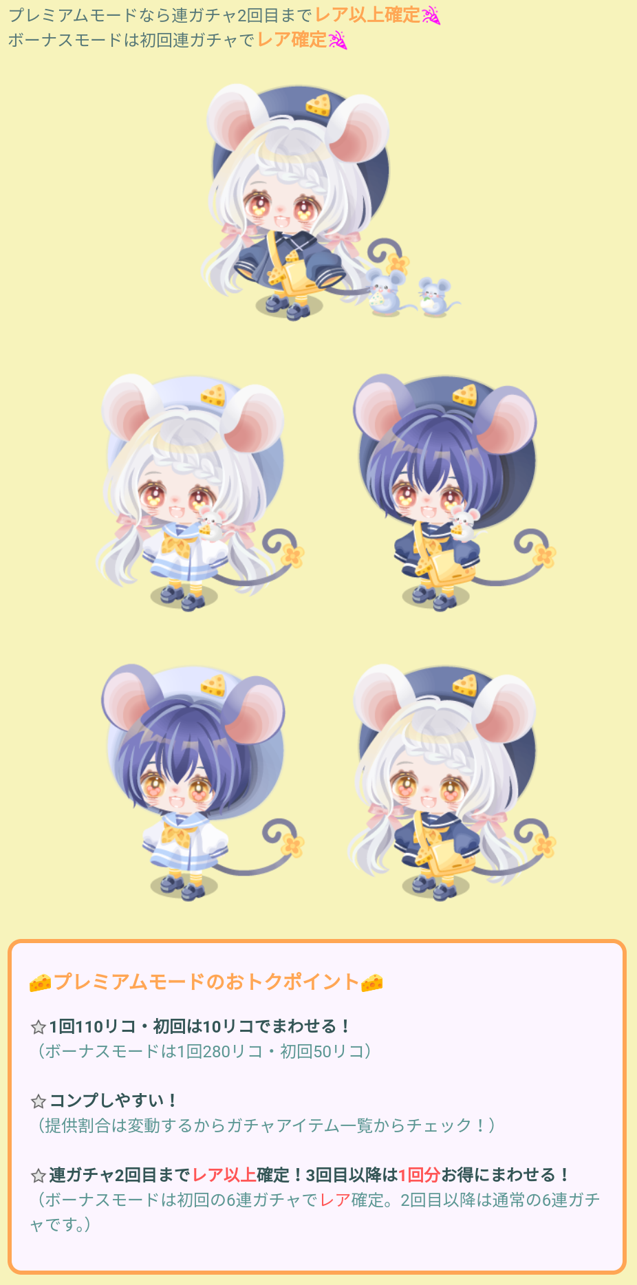ちゅーちゅーようちえんガチャ内容