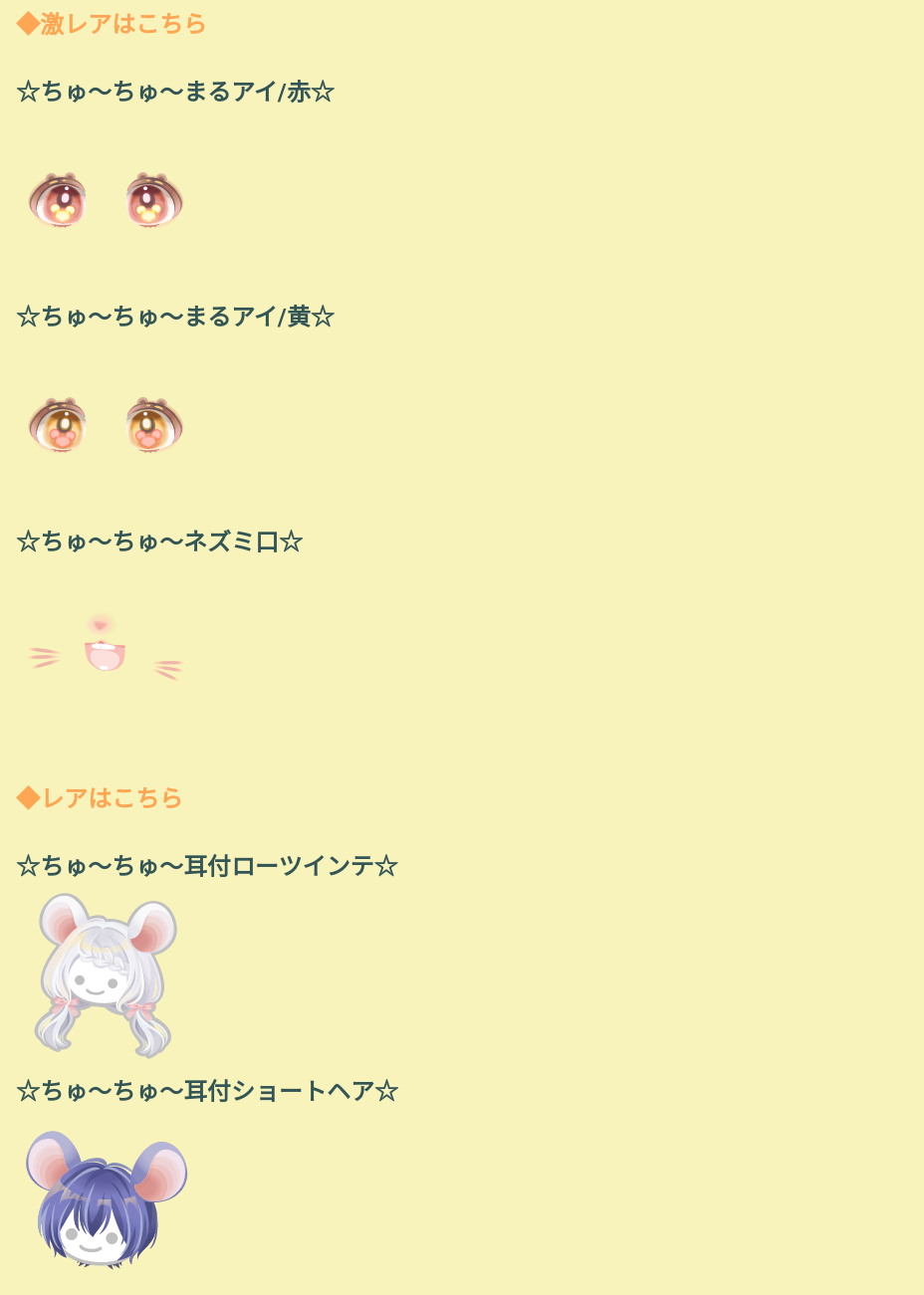 ーーーーー下記よりちゅーちゅーようちえんガチャ記事となりますーーーーー