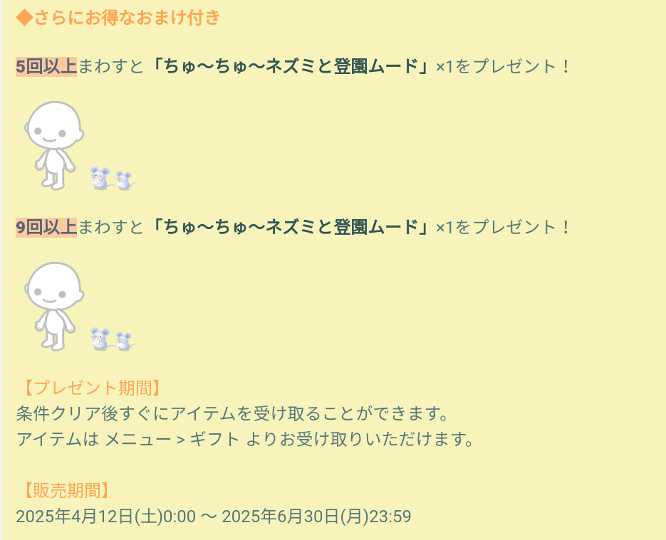 初回限定だろうけど、期間中にビギナー集まれ!パークにおでかけすることで