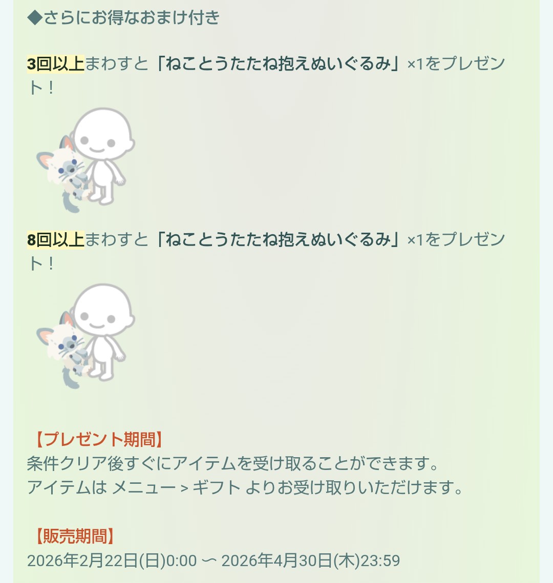 規定回数でのおまけと販売期間