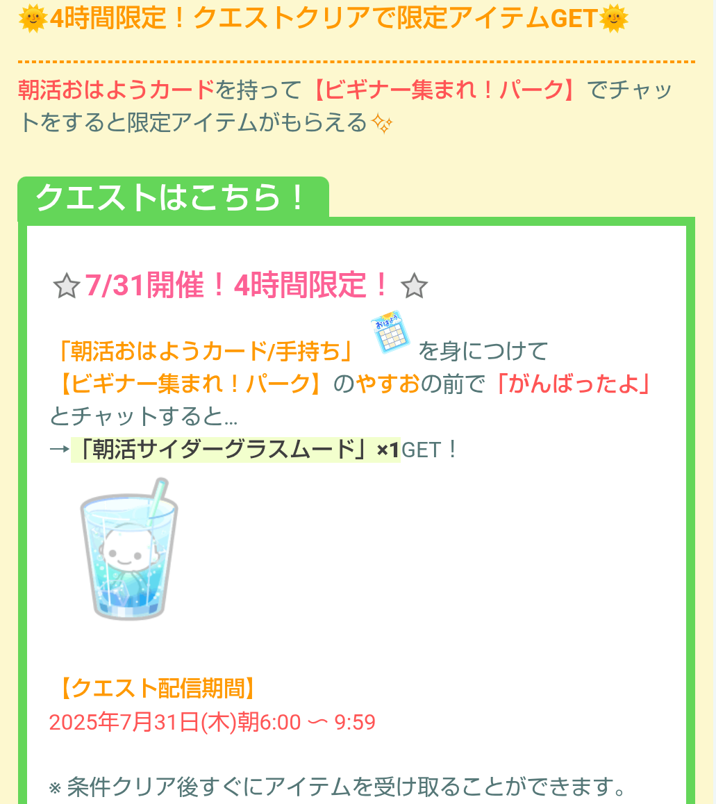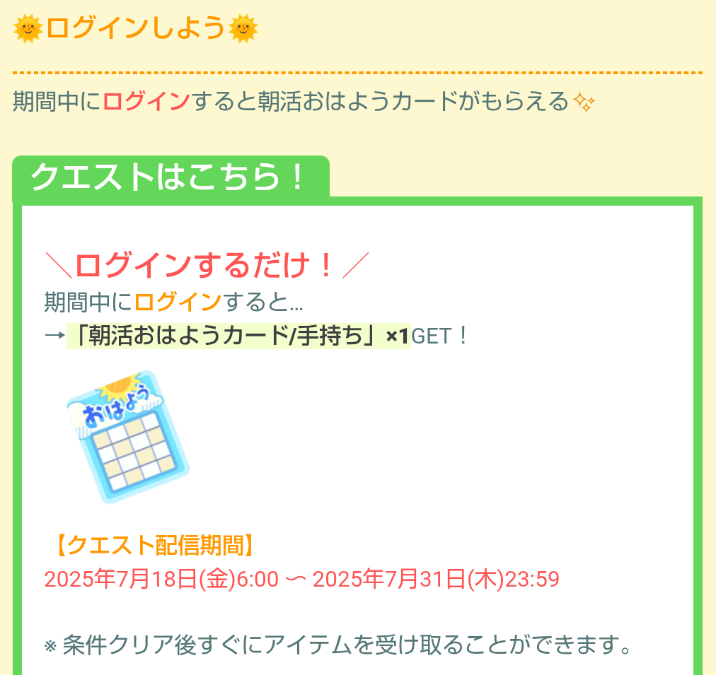 コチラでは8/1〜3の3日間限定で、おはようカードを装着して