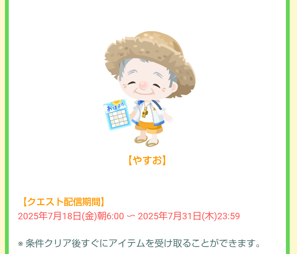 キャラ→メインクエストが7/31までだから忘れがちになるプチ陰険な日程クエだな(σ・∀・)σ ソレナ
