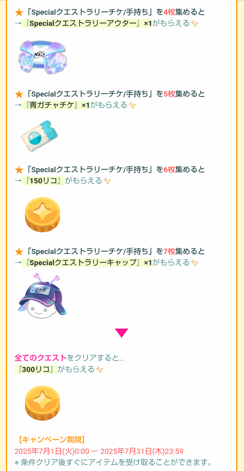 スタンプ4個は貯めてGETしておきたいスペシャルクエストラリー