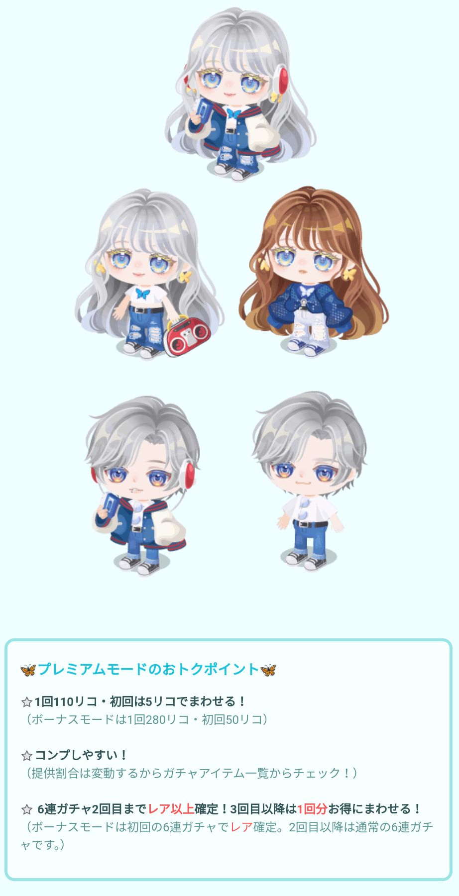 雰囲気画像ではパっと見だと(・∀・)イイ!!んじゃね?って思うんだけど~口パーツはこのガチャとは関係なく、それを含めて見ると結局ただただ5キャラ出して比較しているように見えるけどそこまで(・∀・)イイ!!とは思えないのが何とも複雑な気持ちになりましたwww