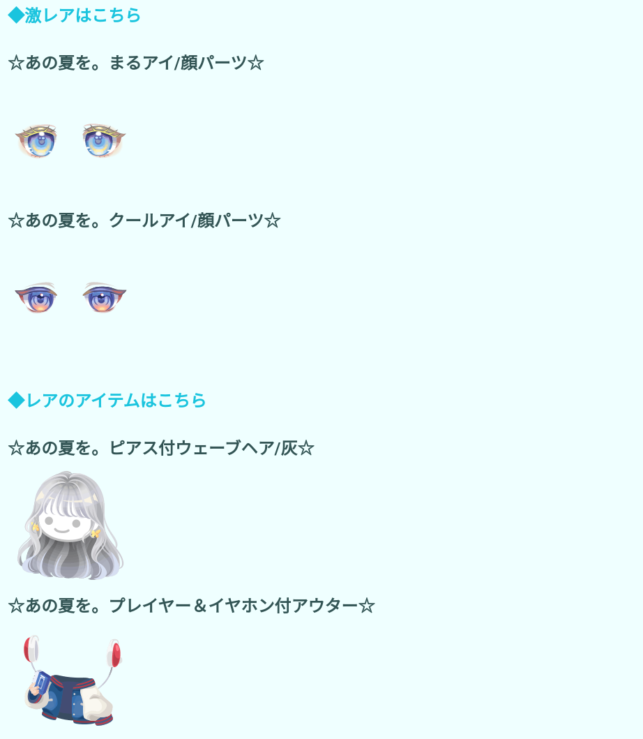 そしてレア設定の方でも女の子向けの髪型がピアス付きで出ているけどそこまで(・∀・)イイ!!とも思えないし、変形シリーズ(?)とは書かれていないけどそんな感じに見えるイヤホン付きのアウターとなっており、こちらもレアとは思えないクオリティなのでそんな選定をするんであればそれ相応だと思えるような(・∀・)イイ!!クオリティでデザインしてもらいたいですよねぇ( ´Д`)=3 フゥ