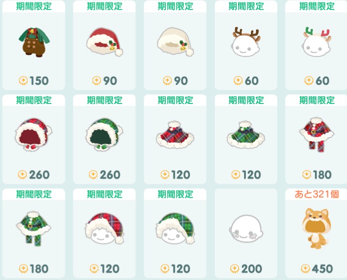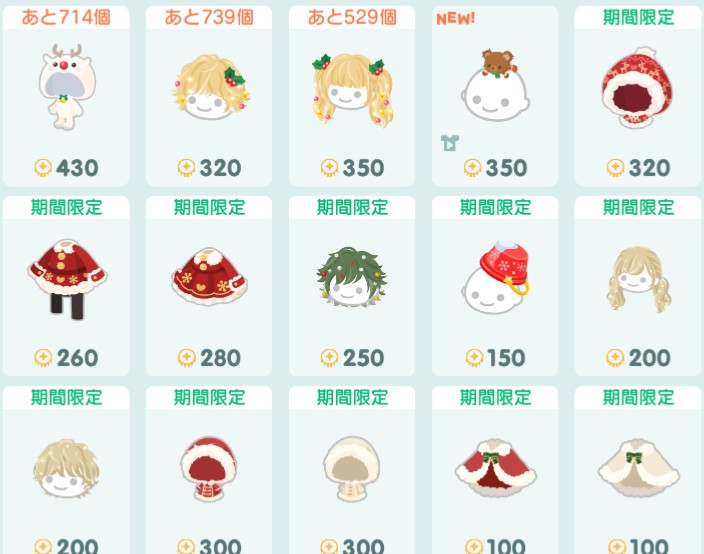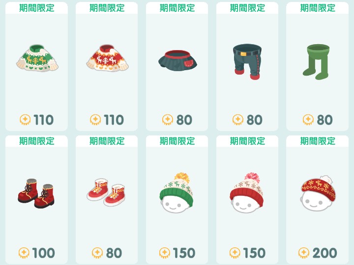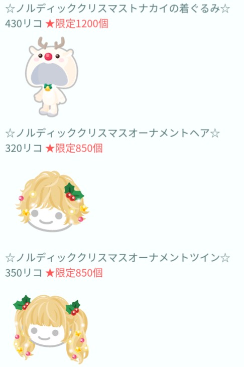 ◎ノルディッククリスマス(通常ショップ)アイテム一覧